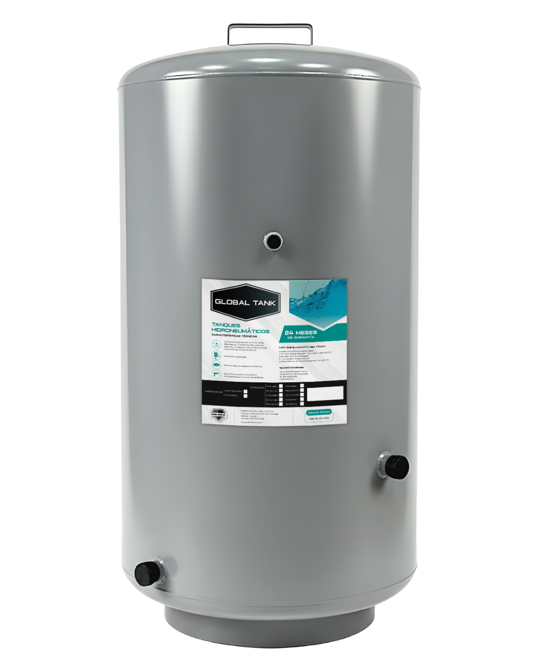 Tanque hidroneumático vertical de 60 galones, fabricado en acero galvanizado con recubrimiento interior epóxico grado alimenticio y soldadura de alta resistencia.