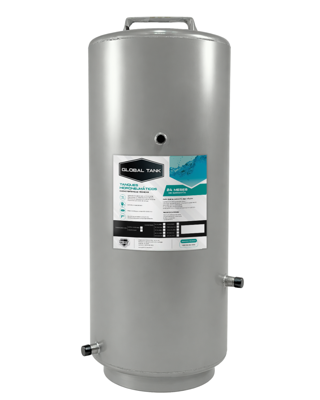 Fabricado por: Global Ironclad – División de Global Metales Modelo: GTG-80GL (G = Galvanizado / 80 GL = 80 galones) Color: Gris (pintura electrostática)