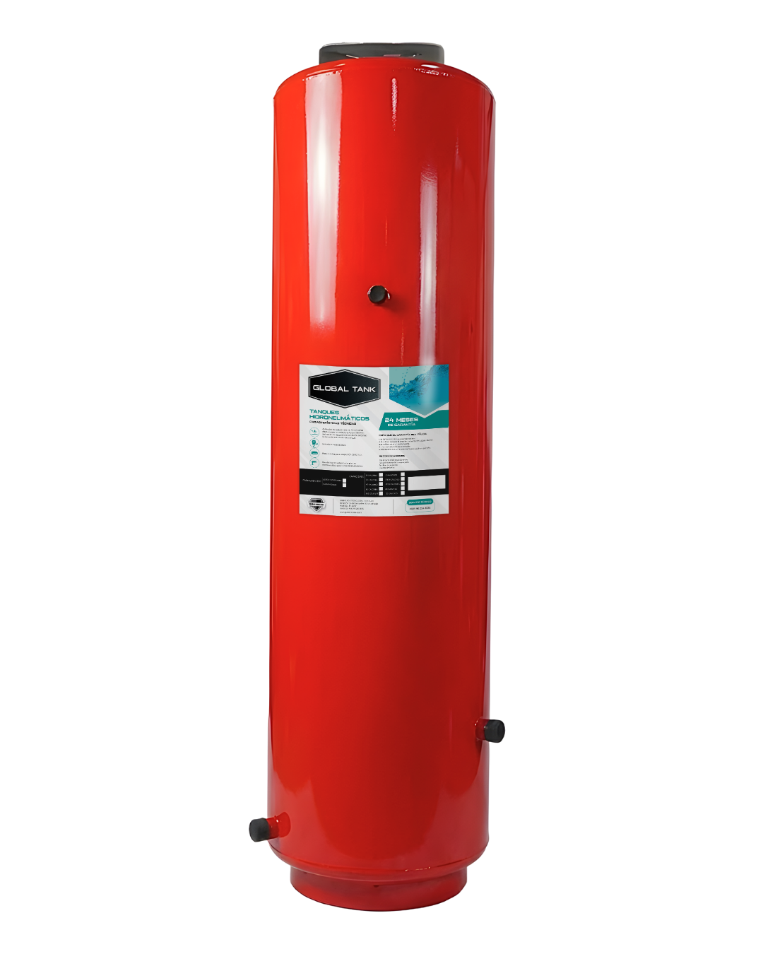 Tanque hidroneumático vertical de 100 galones, fabricado en acero galvanizado con recubrimiento interior epóxico grado alimenticio y soldadura de alta resistencia.